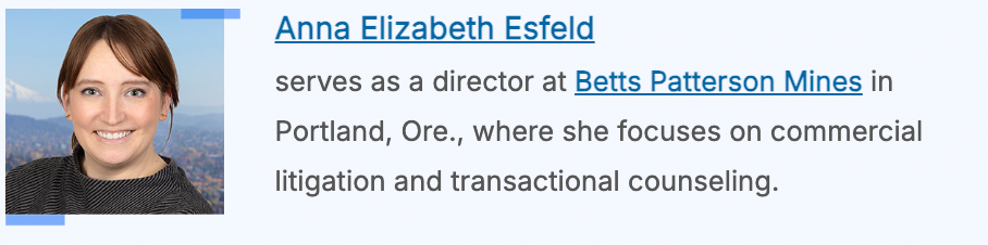 Esfeld: The speed at which AI embedded itself in legal practice was startling. Because the legal field often moves slowly, it has been interesting to watch courts try to react to the use and misuse of AI in litigation. The next frontier is transactional: how judges will treat AI-drafted agreements and the boundaries of their enforceability.